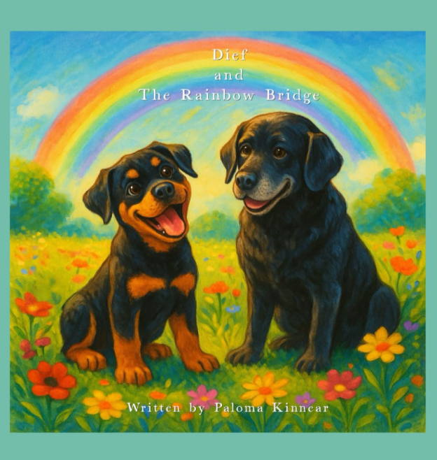 In Dief and The Rainbow Bridge, a curious and loving Rottweiler named Diefenbaker learns about loss, memory, and healing through a gentle conversation with his big sister, a Labrador Retriever named Roxy. As they spend a sunny day together, Roxy shares stories about their late family members—Lucy and Marv—and explains the comforting story of the Rainbow Bridge.